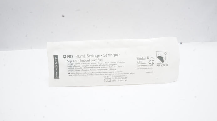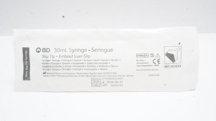 - BD 302833 Slip Tip 30 ml Syringe