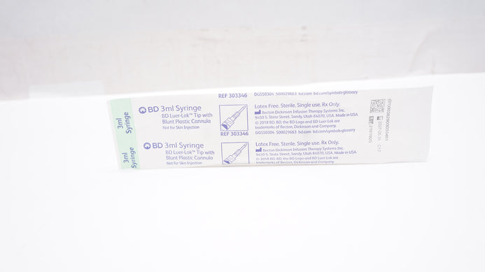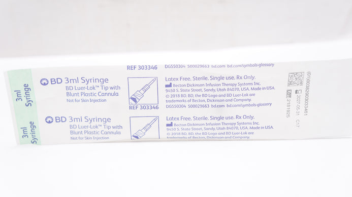 - BD 303346 3ml Syringe Luer-Lok Tip with Blunt Plastic Cannula