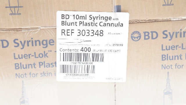 - BD 303348 10ml Syringe Luer-Lok Tip w/Blunt Plastic Cannula - Box of 400