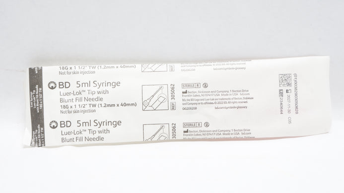 - BD 305062 Luer-Lok Tip 5ml Syringe with Blunt Fill Ndle 18Gx1-1/2inch TW