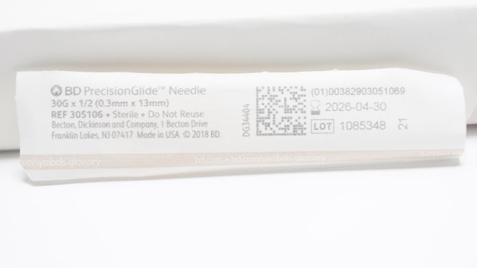 - BD 305106 Becton PrecisionGlide Ndle 30G x 1/2inch