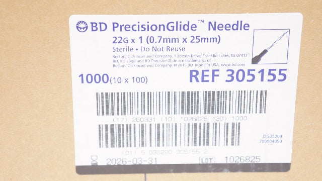 - BD 305155 PrecisionGlide Ndle 22G x 1 - Box of 1000