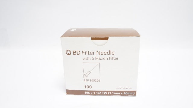 - BD 305200 Becton Filter Ndle. W/5 Micron Filter 19G x 1-1/2TW (x) - Box of 100