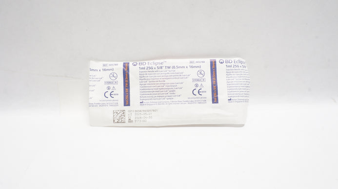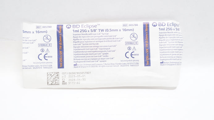 - BD 305780 Eclipse Injection Ndle W/Luer-Lok Syringe 1ml, 25G x 5/8inch