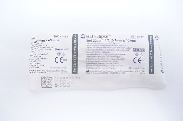 - BD 305783 Eclipse Injection Ndle with Luer-Lok 3ml, 22G x 1-1/2inch