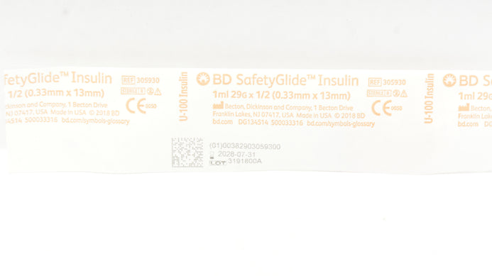 - BD 305930 SafetyGlide U-100 Insulin 1ml 29G x 1/2inch