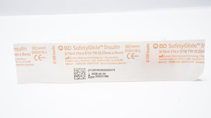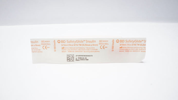 - BD 305937 SafetyGlide U-100 Insulin Syringe 3/10ml 31G x 5/16TW