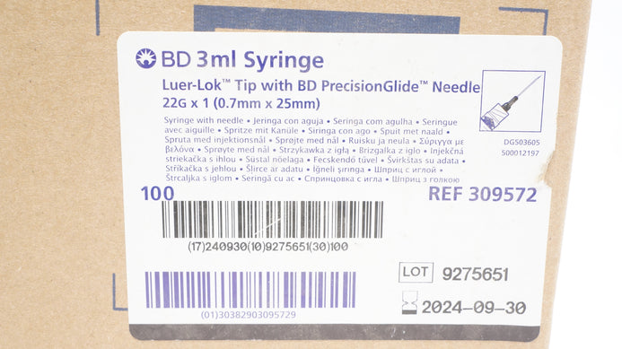 - BD 309572 3ml Syringe Luer-Lok Tip 22G x 1inch - Case of 100 (x)