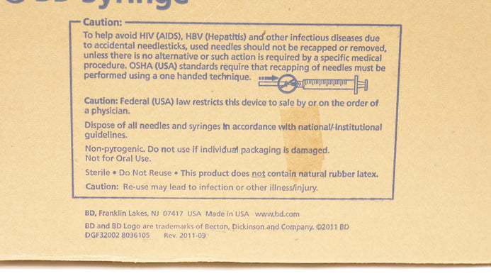 - BD 309657 Luer-Lok Tip, Syringe 3ml (x) - Box of 181
