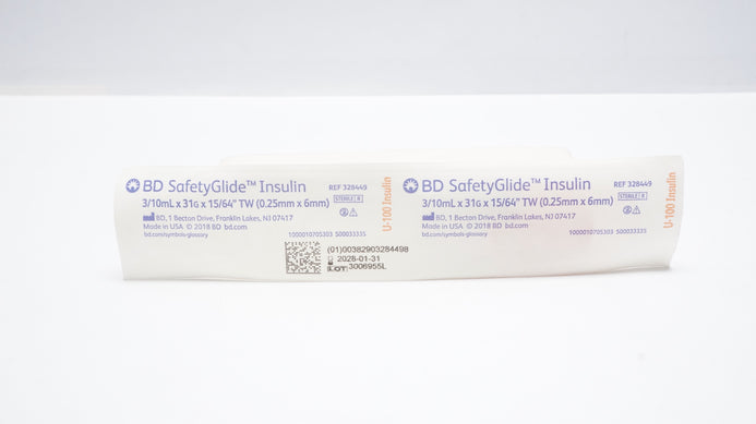 - BD 328449 SafetyGlide Insulin Syringe 3/10ml x 31G x 15/64in TW
