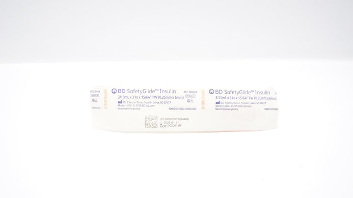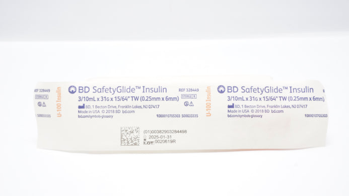 - BD 328449 SafetyGlide Insulin Syringe 3/10ml x 31G x 15/64in TW