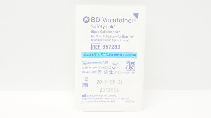 - BD 367283 Vacutainer Safety-Lok Blood Collection Set 23G x 3/4inch x 12inch