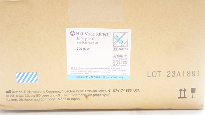 - BD 367283 Vacutainer Safety-Lok Blood Collection Set 23Gx3/4in x 12In-Box of 200