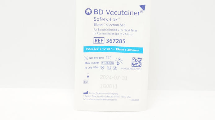 - BD 367285 Vacutainer Safety-Lok Blood Collection Set 25G x 3/4 x 12inch (x)