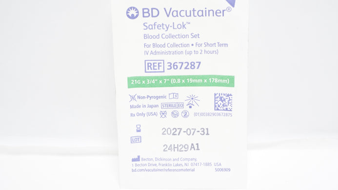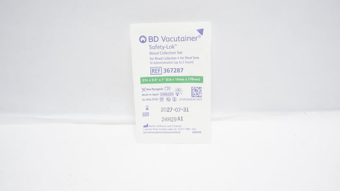- BD 367287 Vacutainer Safety-Lok Blood Collection Set 21G x 3/4inch x 7inch