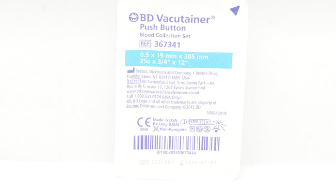 - BD 367341 Vacutainer Push Button Blood Collection Set 25G x 3/4inch x 12inch (x)