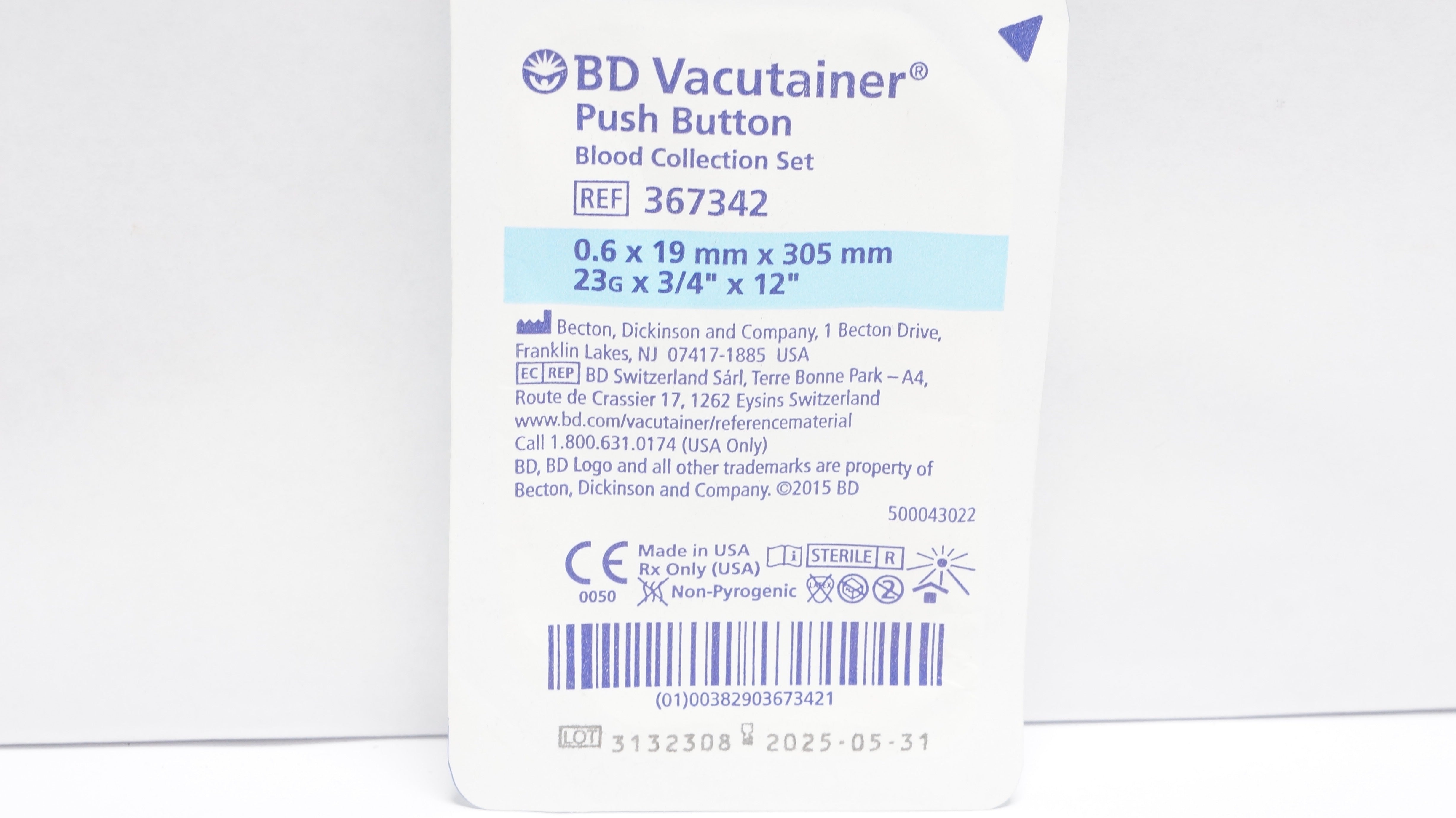 - BD 367342 Vacutainer Push Button Blood Collection Set 23G x 3/4inch x 12inch (x)