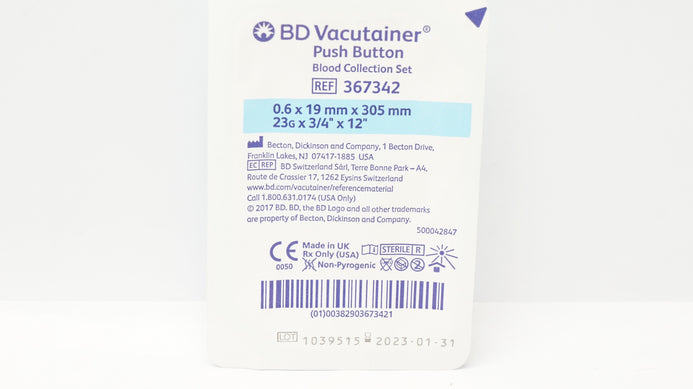 - BD 367342 Vacutainer Push Button Blood Collection Set 23G x 3/4inch x 12inch (x)