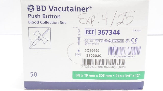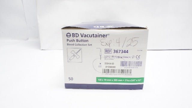 - BD 367344 Vacutainer Push Button Blood Collection Set 21Gx3/4inx12in(x)-Box of50