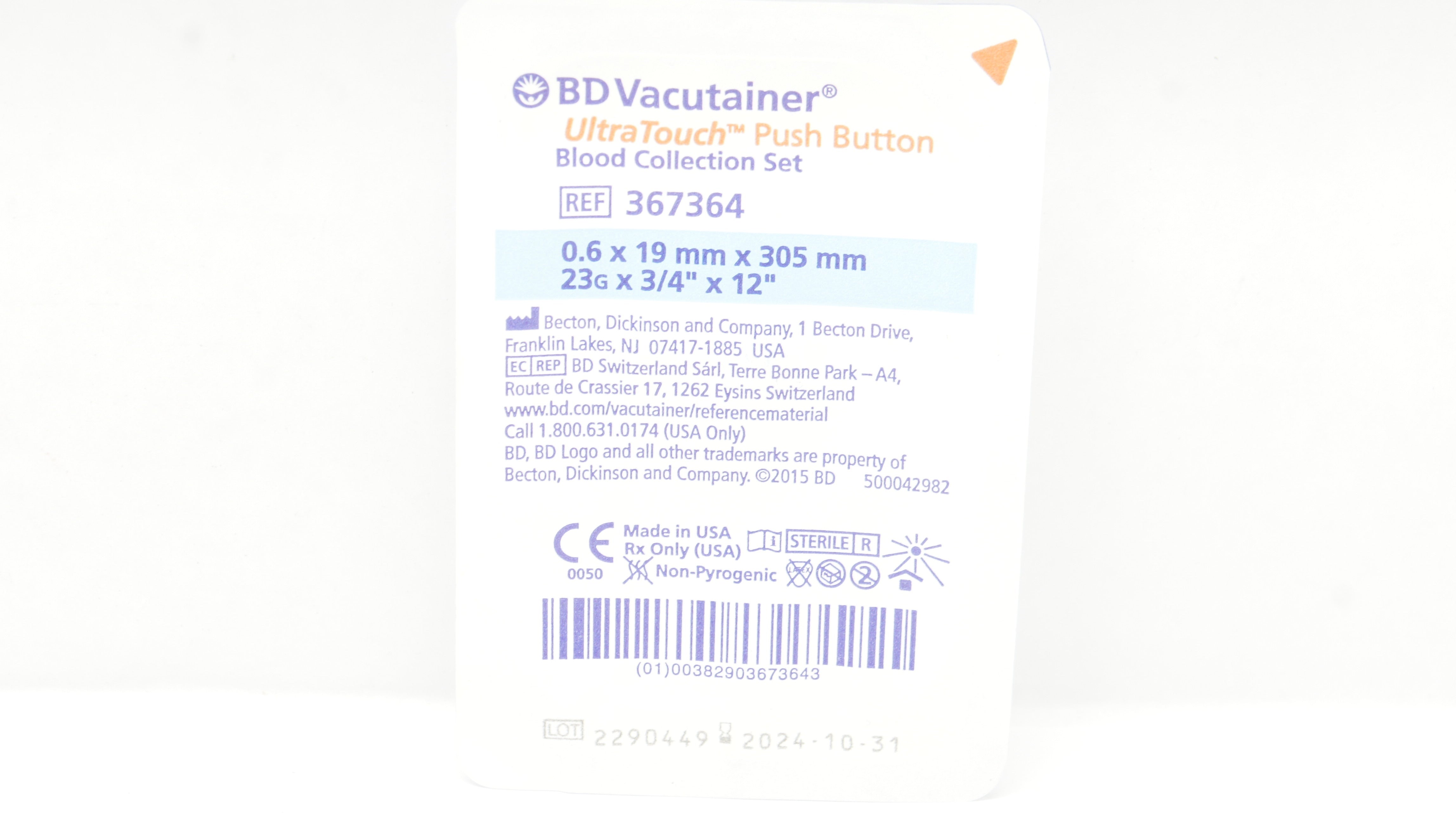 - BD 367364 Vacutainer UltraTouch Blood Collection Set 23G x 3/4inch x 12inch