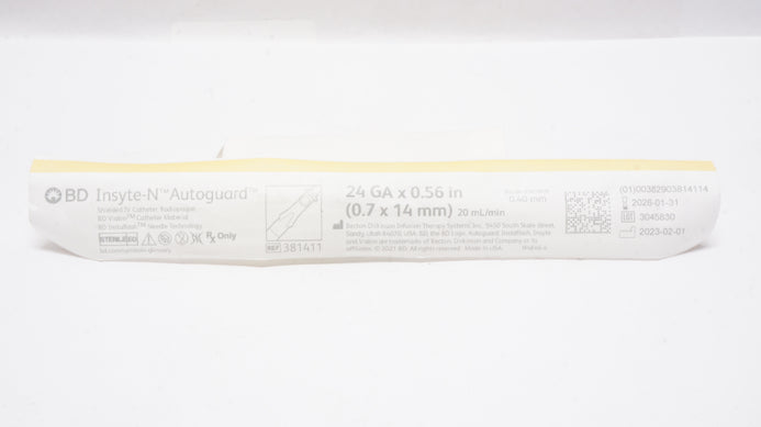 - BD 381411 Insyte-N Autoguard Shielded IV Cath. 24Ga x 0.56inch