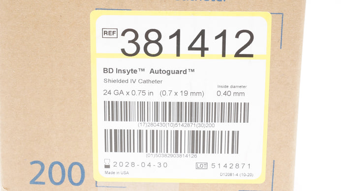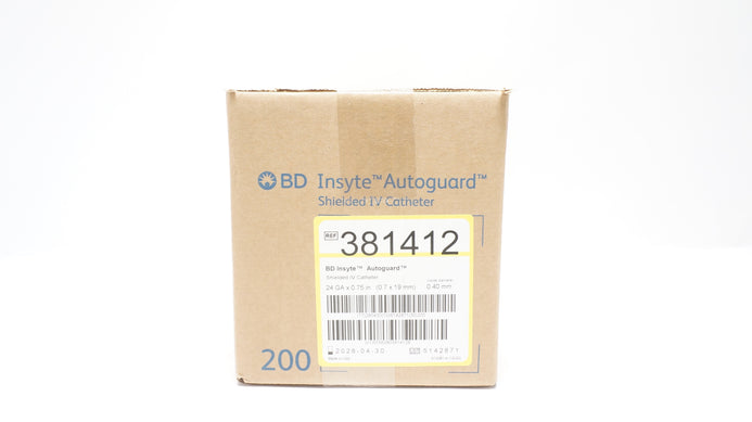 - BD 381412 Insyte Autoguard Shielded I.V. Cath. 24Ga x 0.75In - Case of 200