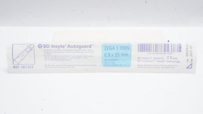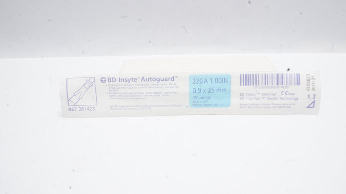 - BD 381423 Insyte Autoguard Shielded IV Cath. 22Ga x 1.00 inch x 35 ml/min (x)