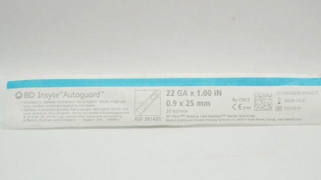 - BD 381423 Insyte Autoguard Shielded IV Cath. 22GA x 1inch 35 ml/min(x)