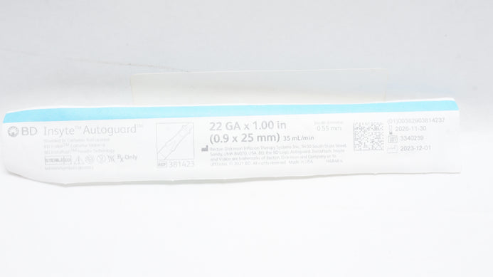 - BD 381423 Insyte Autoguard Shielded IV Cath. 22Ga x 1.00inch 35ml/min