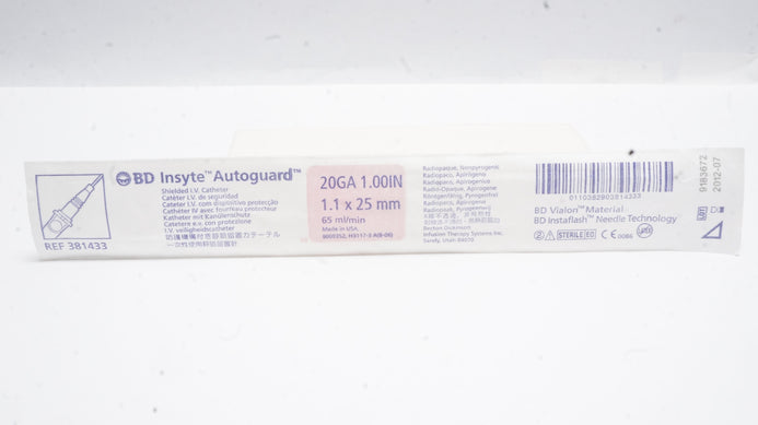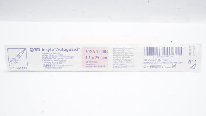 - BD 381433 Insyte Autoguard Shielded IV Cath. 20Ga x 1inch 65ml/min (x)