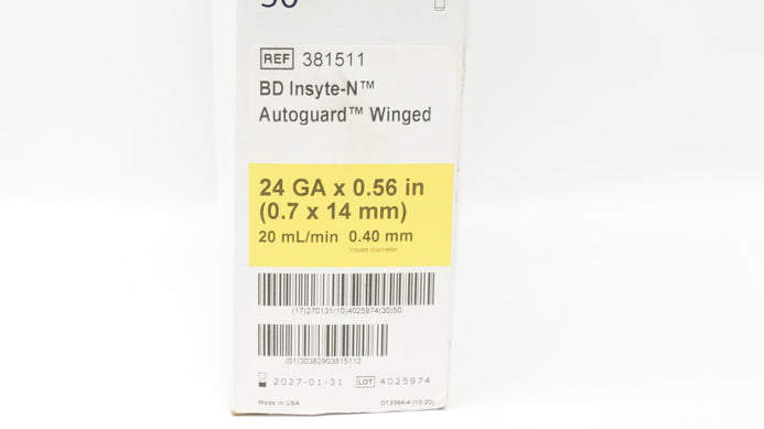 - BD 381511 BD Insyte Autoguard Shielded I.V. Cath. 24Ga x 0.56inch - Box of 50