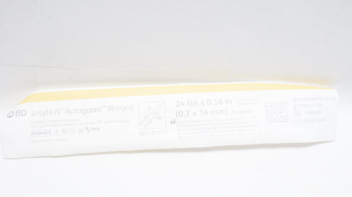 - BD 381511 Insyte-N Autoguard Shielded I.V. Cath. Winged 24Ga x 0.56inch 20mL/min