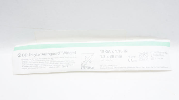 - BD 381544 Insyte Autoguard Winged Shield I.V. Cath. 18Ga x 1.16inch 105mL/min(x)