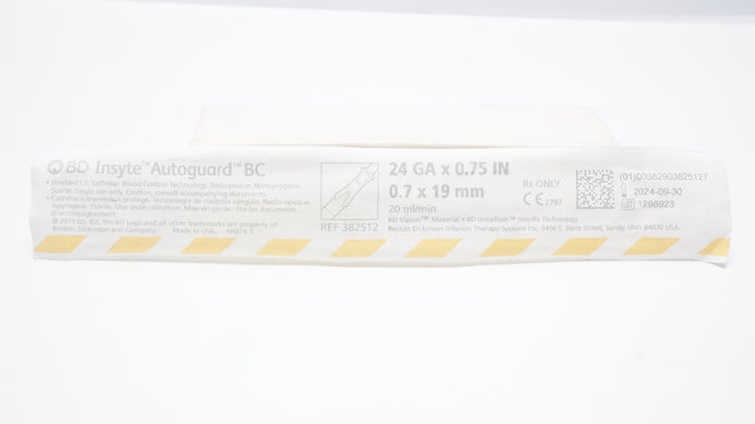 - BD 382512 Insyte Autoguard BC Shielded IV Cath. 24GA x 0.75inch 20mL/min (x)