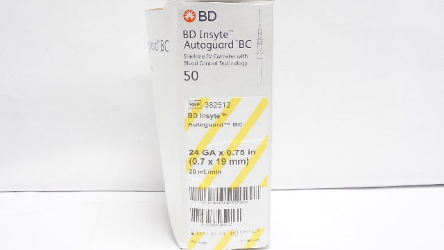- BD 382512 Insyte Autoguard BC Shielded IV Cath. 24GA x 0.75inch - Box of 50