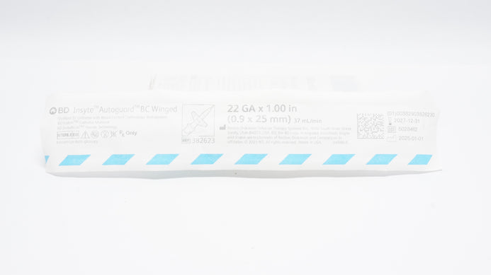 - BD 382623 Insyte Autoguard BC Winged Shielded IV Cath. 22GA x 1inch 37mL/min