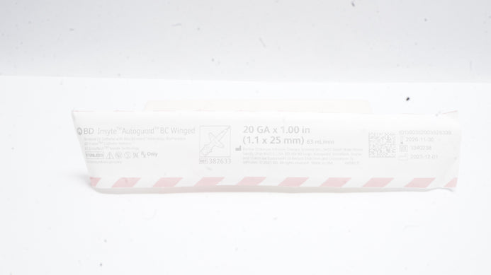 - BD 382633 Insyte Autoguard BC Winged Shielded IV Cath. 20GA x 1.00inch 63ml/min