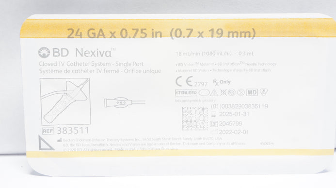 - BD 383511 Nexiva Closed IV Cath. System-Single Port 24GA x 0.75in (x)