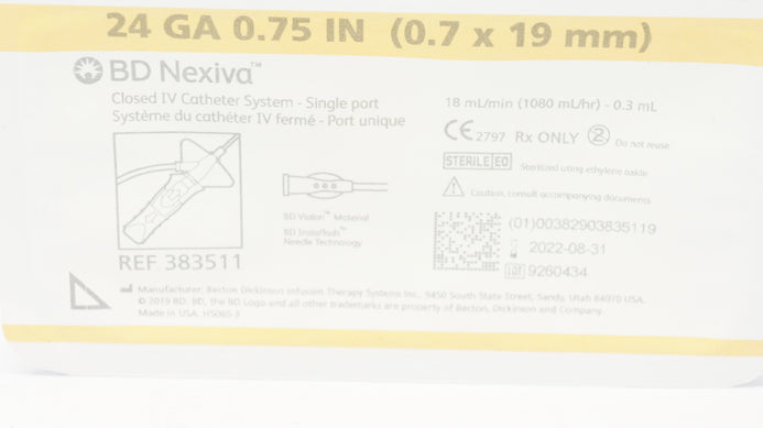 - BD 383511 Nexiva Closed IV Cath. System-Single Port 24GA x 0.75inch 0.3mL (x)