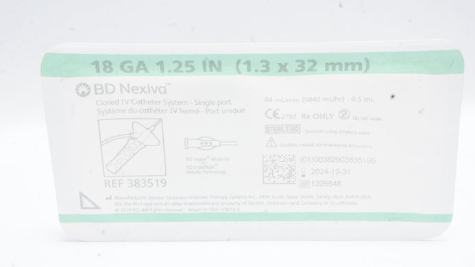 - BD 383519 Nexiva Closed IV Cath. System 18Ga x1.25inch