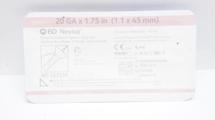 - BD 383538 Nexiva Closed IV Cath. System Dual Port 20GA. x 1.75In.