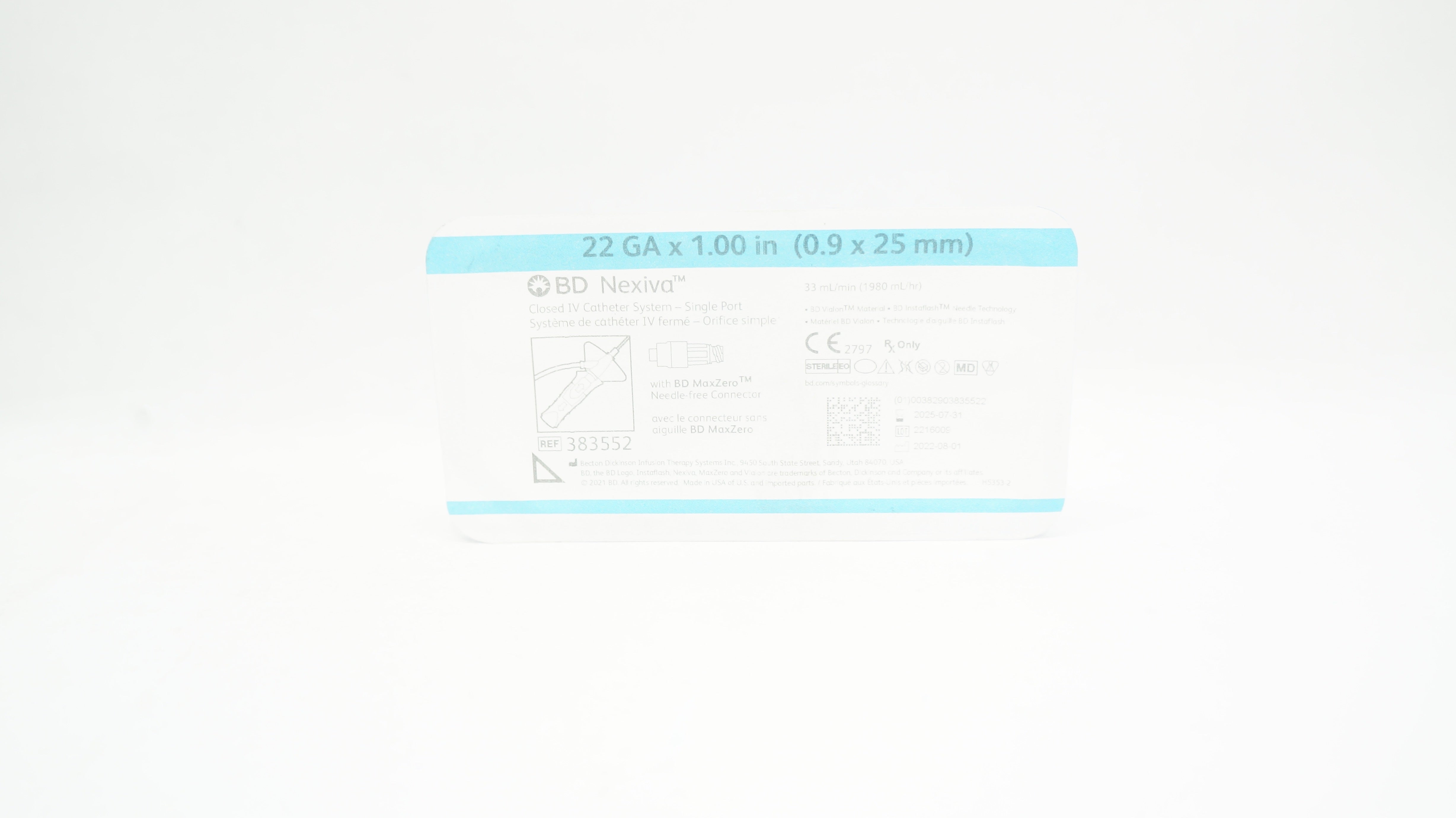 - BD 383552 Nexiva Closed IV Cath. System 22Ga x 1.00inch 33mL/min