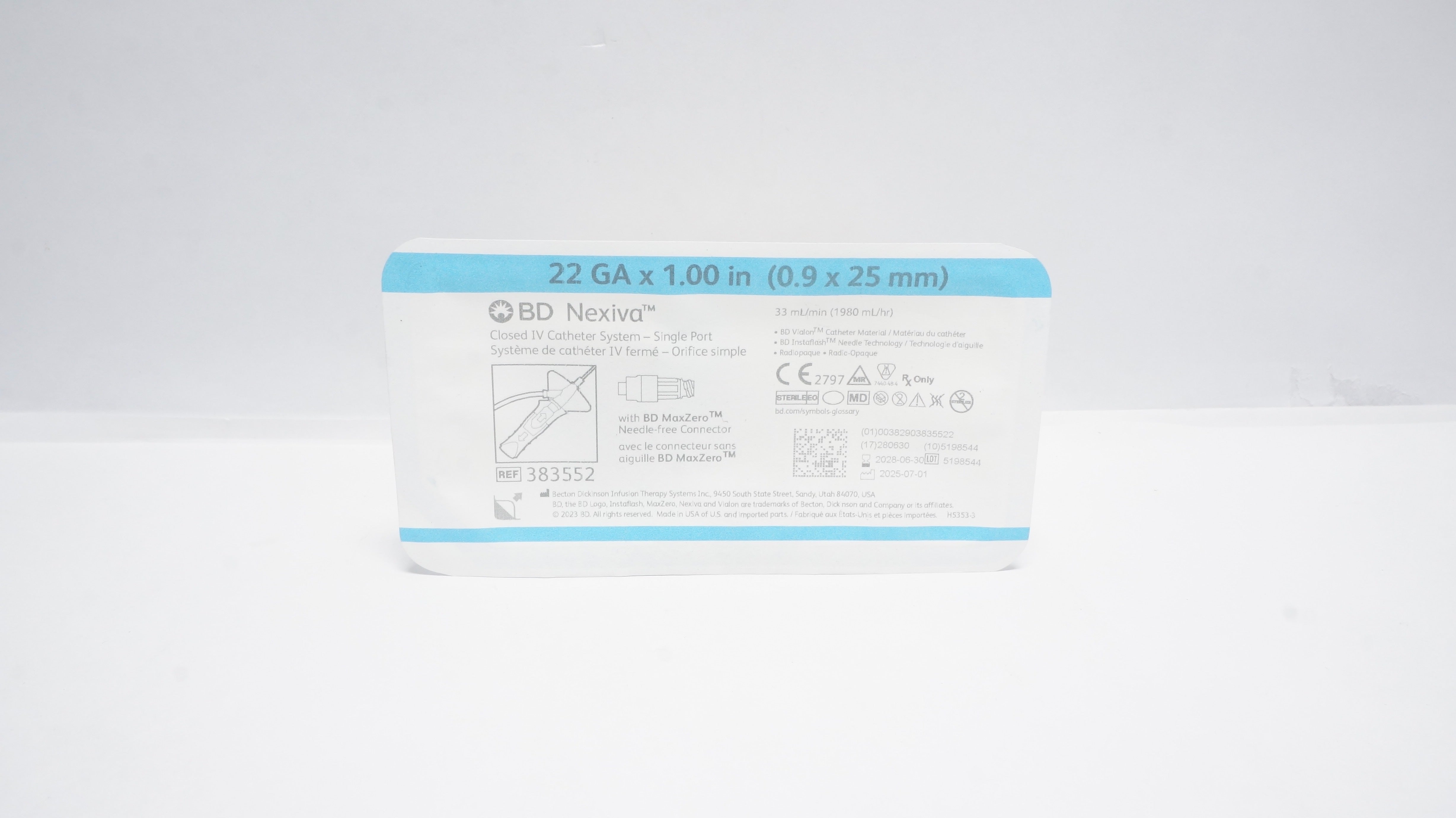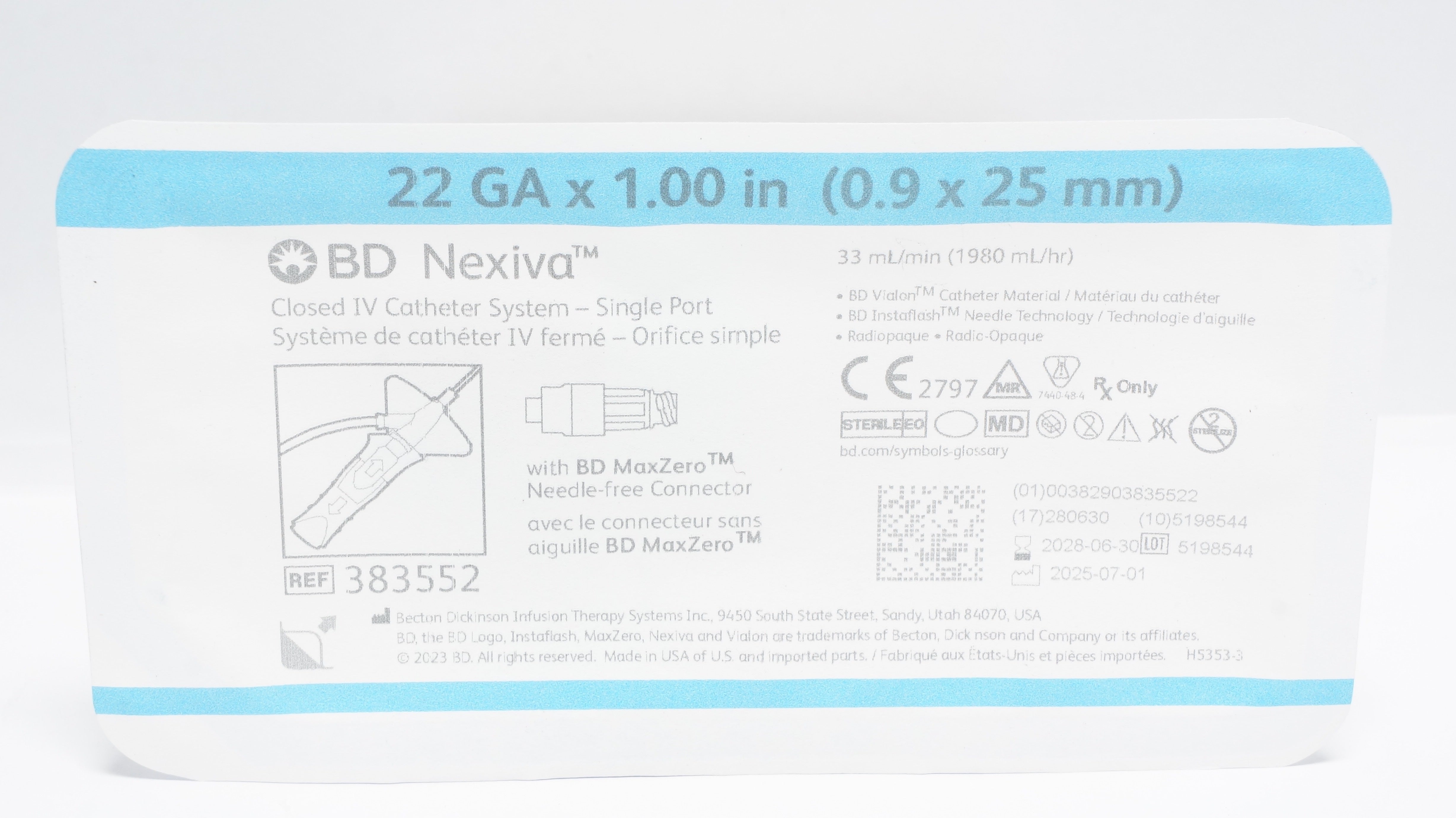 - BD 383552 Nexiva Closed IV Cath. System 22Ga x 1.00inch 33mL/min