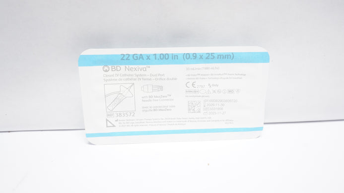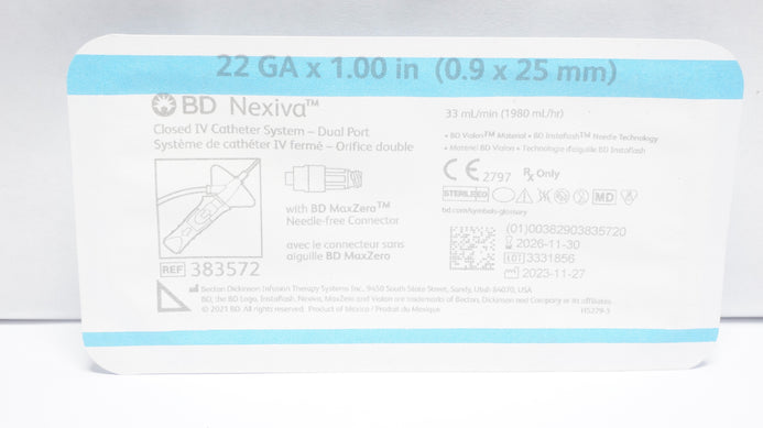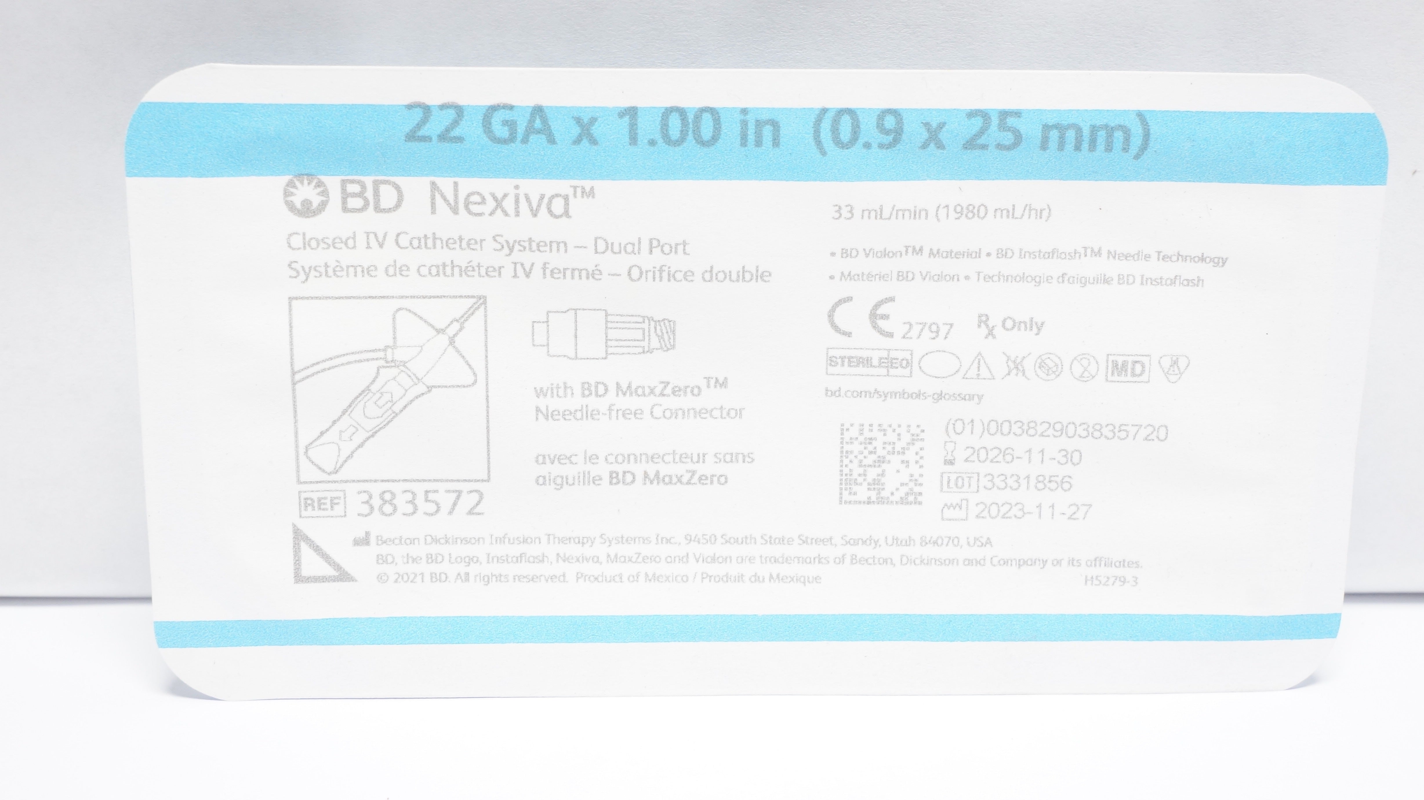 - BD 383572 Nexiva Closed IV Cath. System 22Ga x 1.00in 33ml/min