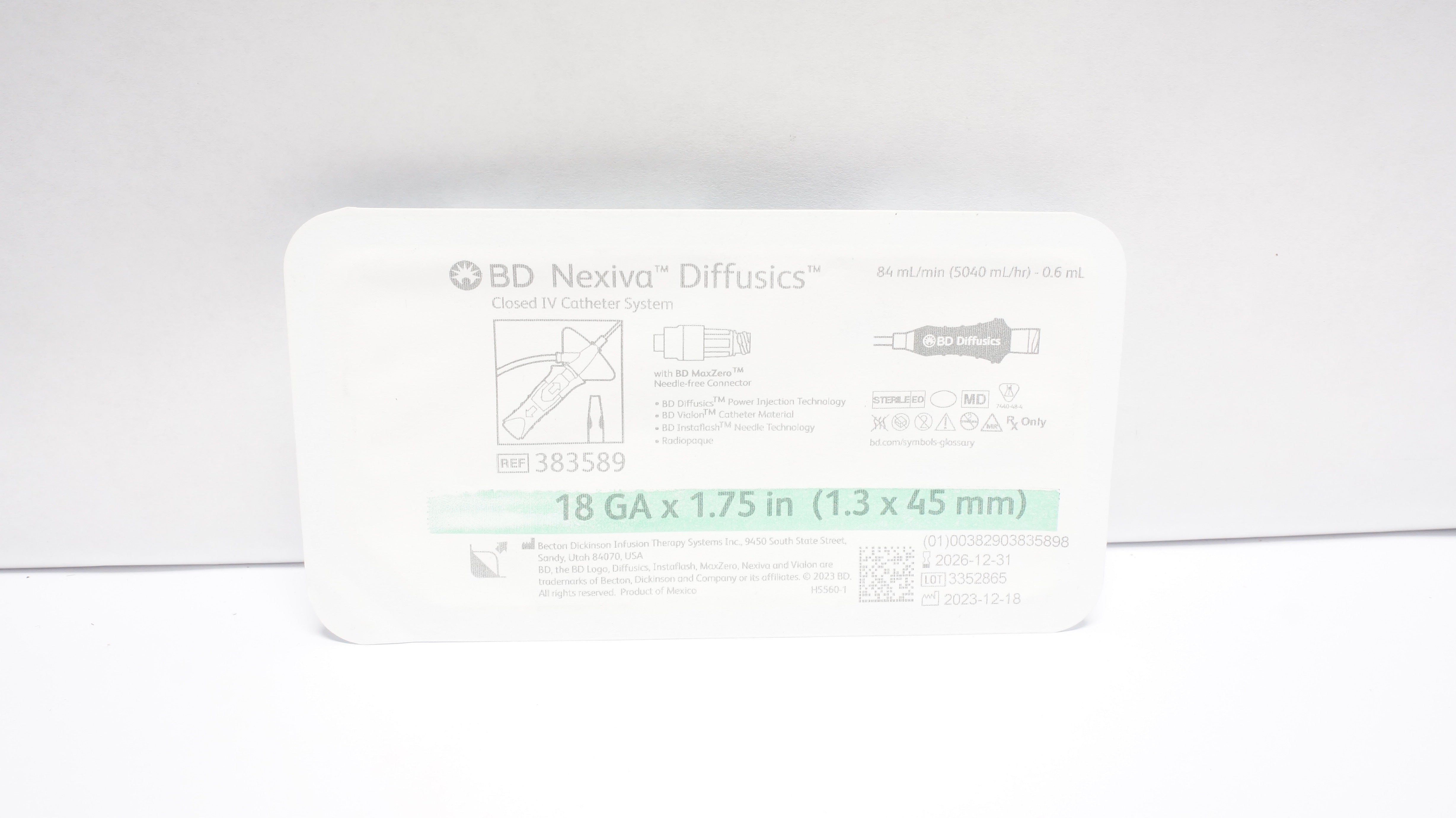 - BD 383589 Nexiva Diffusics, Closed IV Cath. System 18GA x 1.75inch