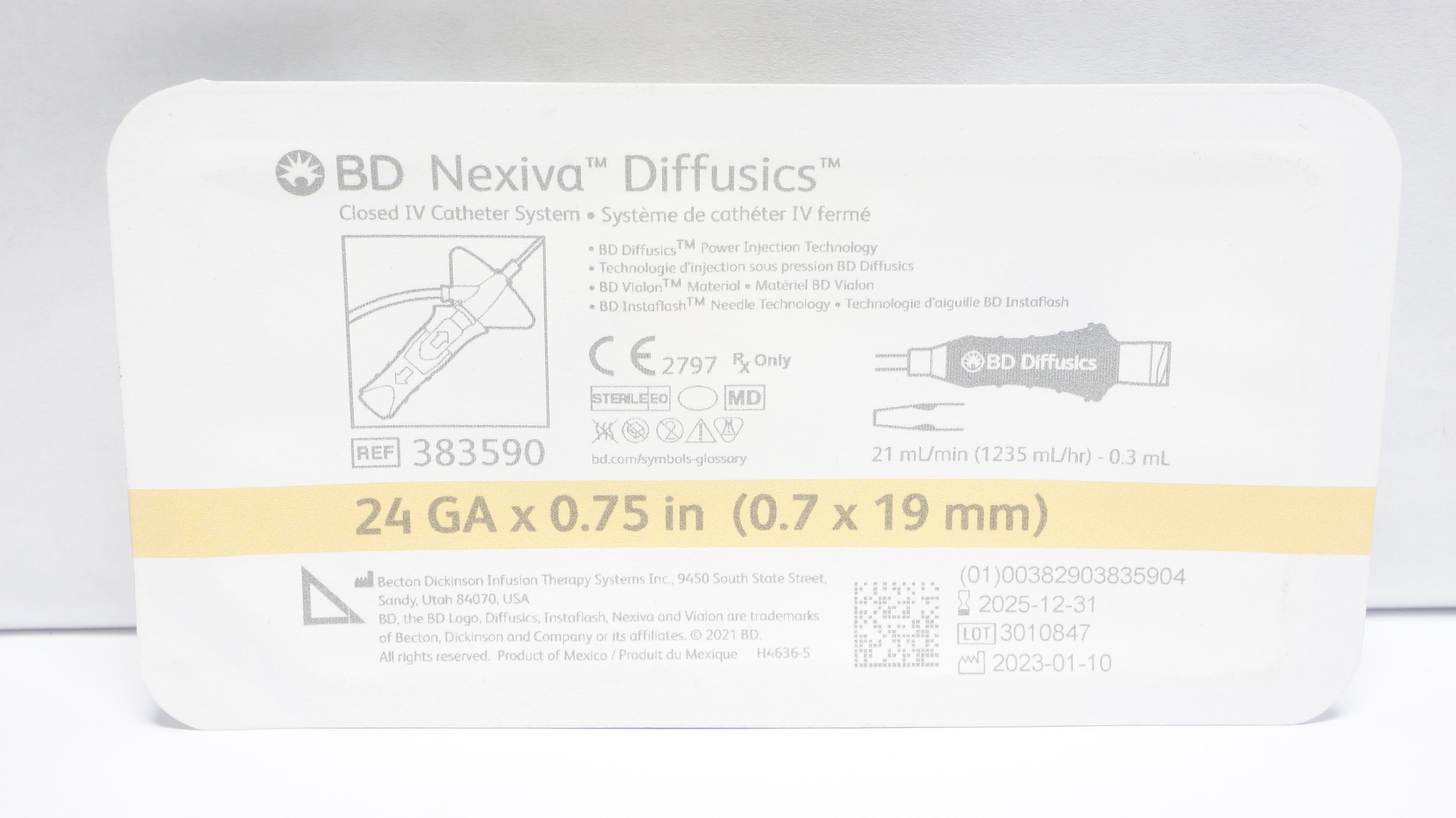 - BD 383590 Nexiva Diffusics Closed IV Cath. System 24GA x 0.75inch