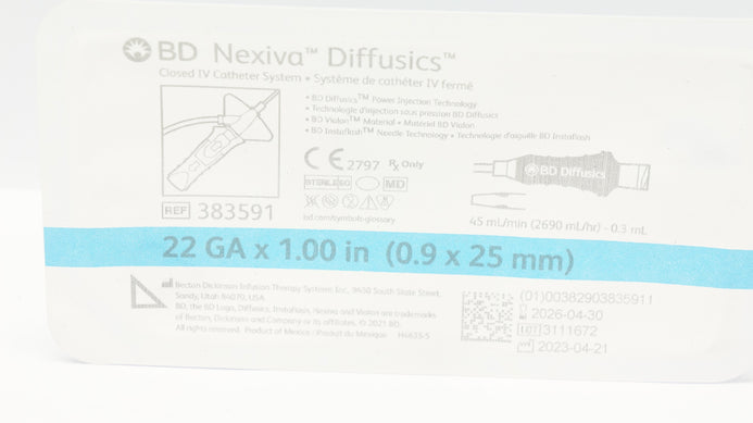 - BD 383591 Nexiva Diffusics Closed IV Cath. System 22Ga x 1.00inch 45mL/min
