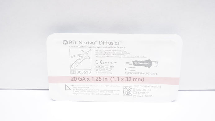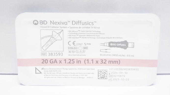 - BD 383593 Nexiva Diffusics Closed IV Cath. System 20GA x 1.25inch 64mL/min