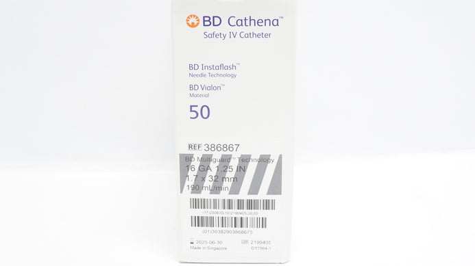 - BD 386867 Cathena Safety IV Cath. 16GA x 1.25In, 190ml/min - Box of 32 (x)