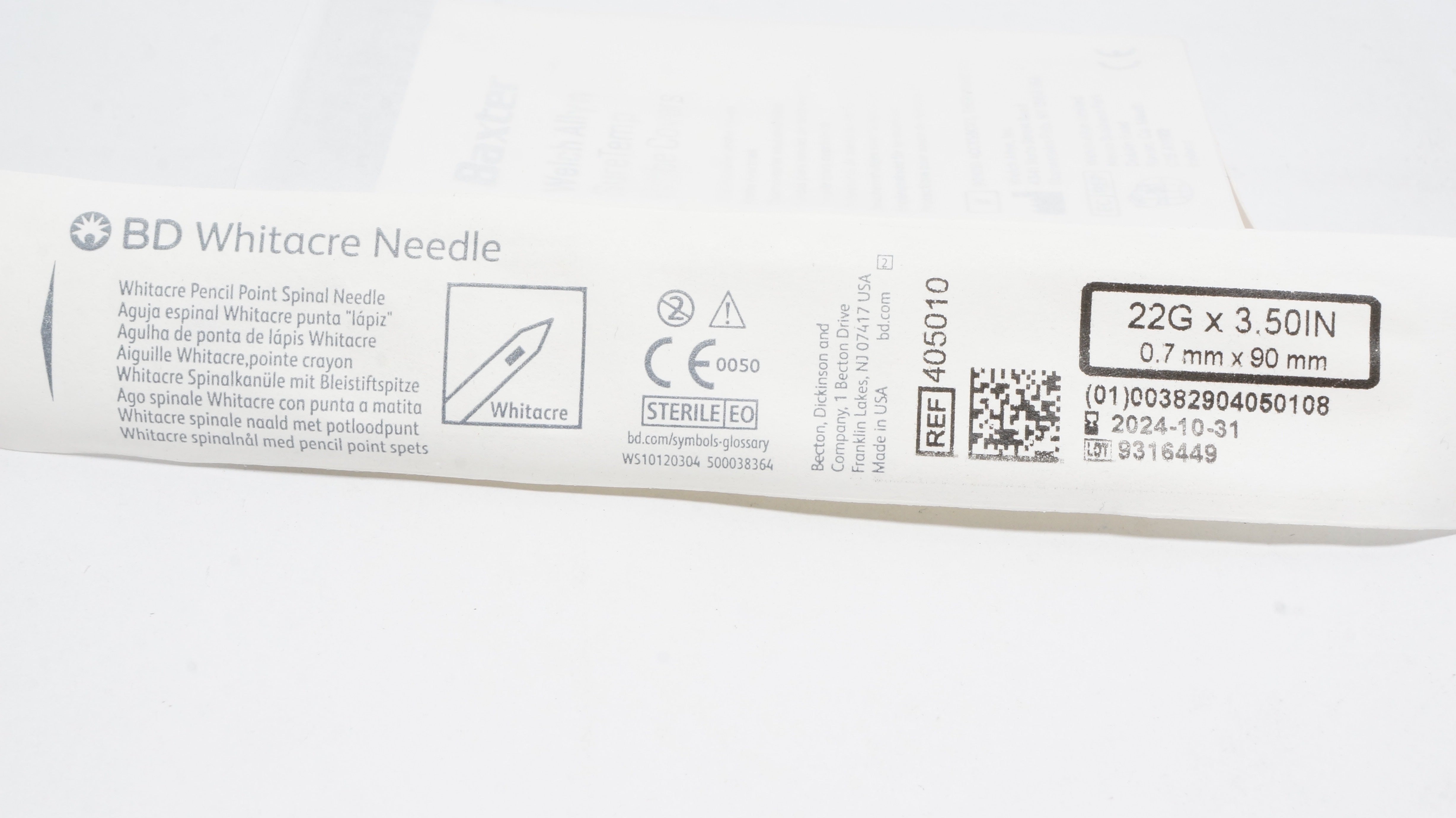 - BD 405010 Whitacre Pencil Point Spinal Ndle 22Ga x 3.50inch (x)